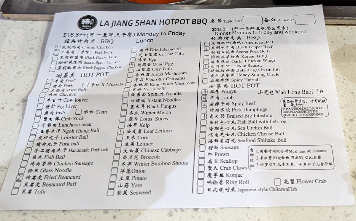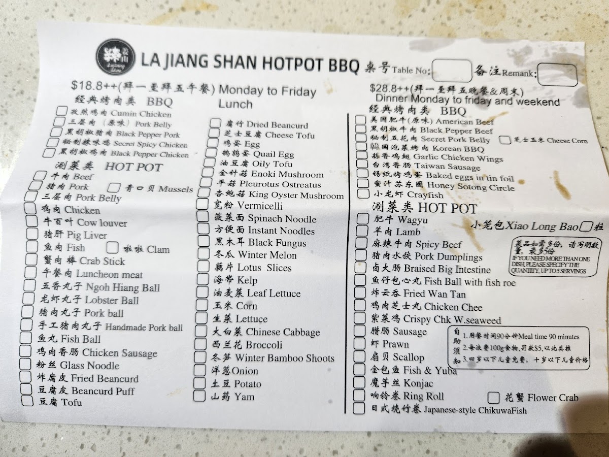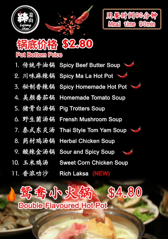 Welcome to LaJiangShan Hotpot, where culinary delight awaits you at 35 Selegie Rd, Singapore. This gem offers a tantalizing array of hotpot and BBQ options, all priced reasonably at SGD 2.80 for a choice of various flavorful soup bases. Choose from the Spicy Ma La Hot Pot or the comforting Homemade Tomato Soup, among others, with free refills ensuring a satisfying dining experience.